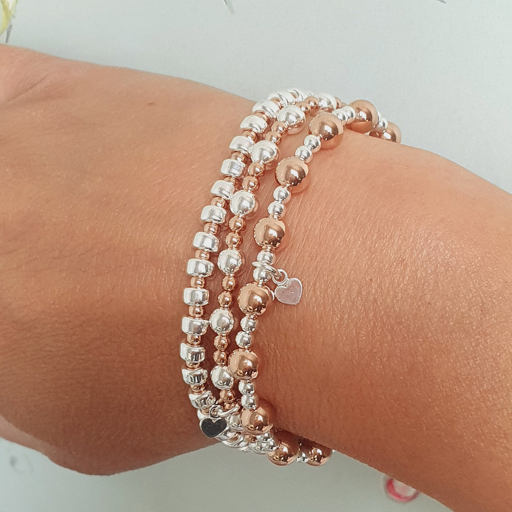 Sterling Silver & Rose Gold Floating Heart Bracelet