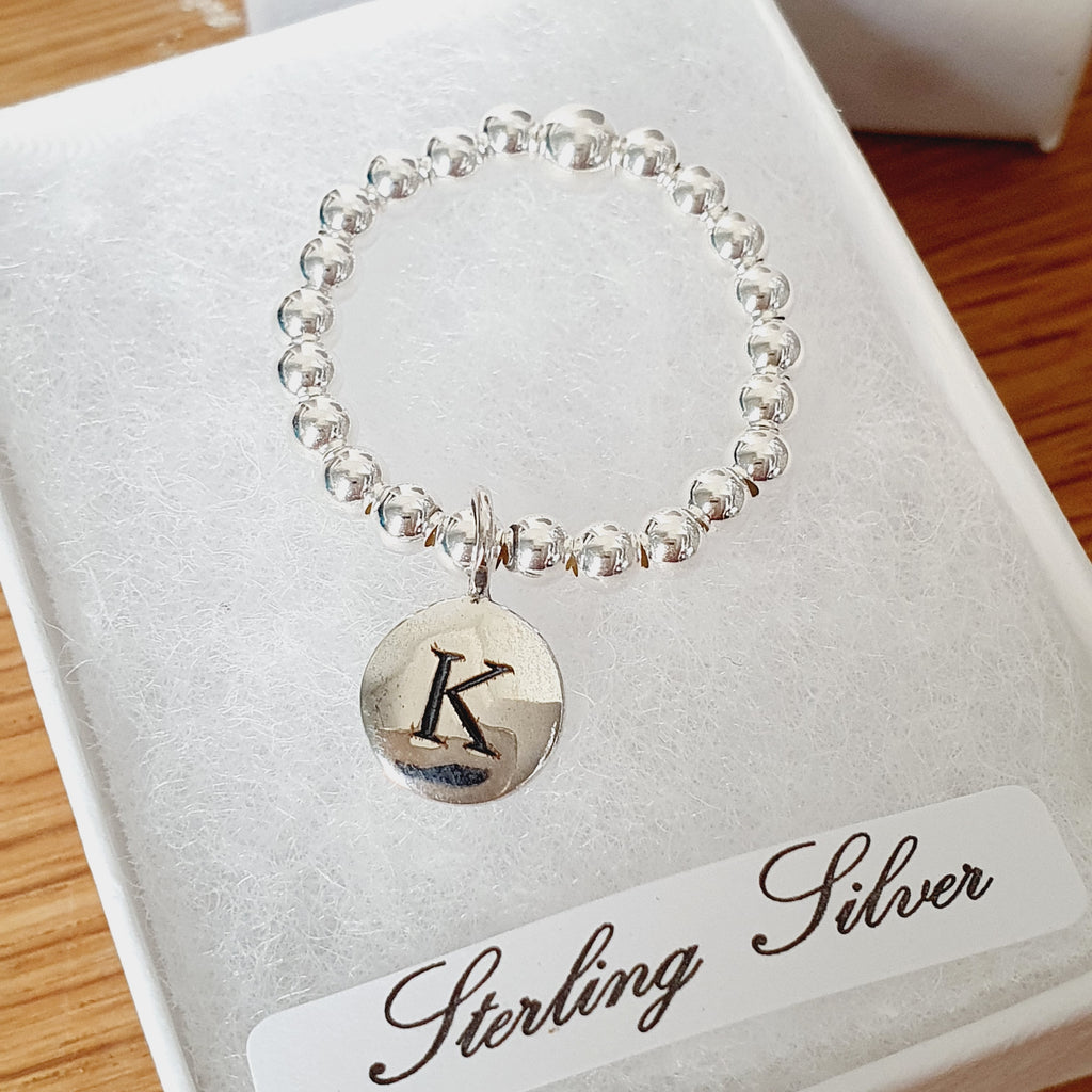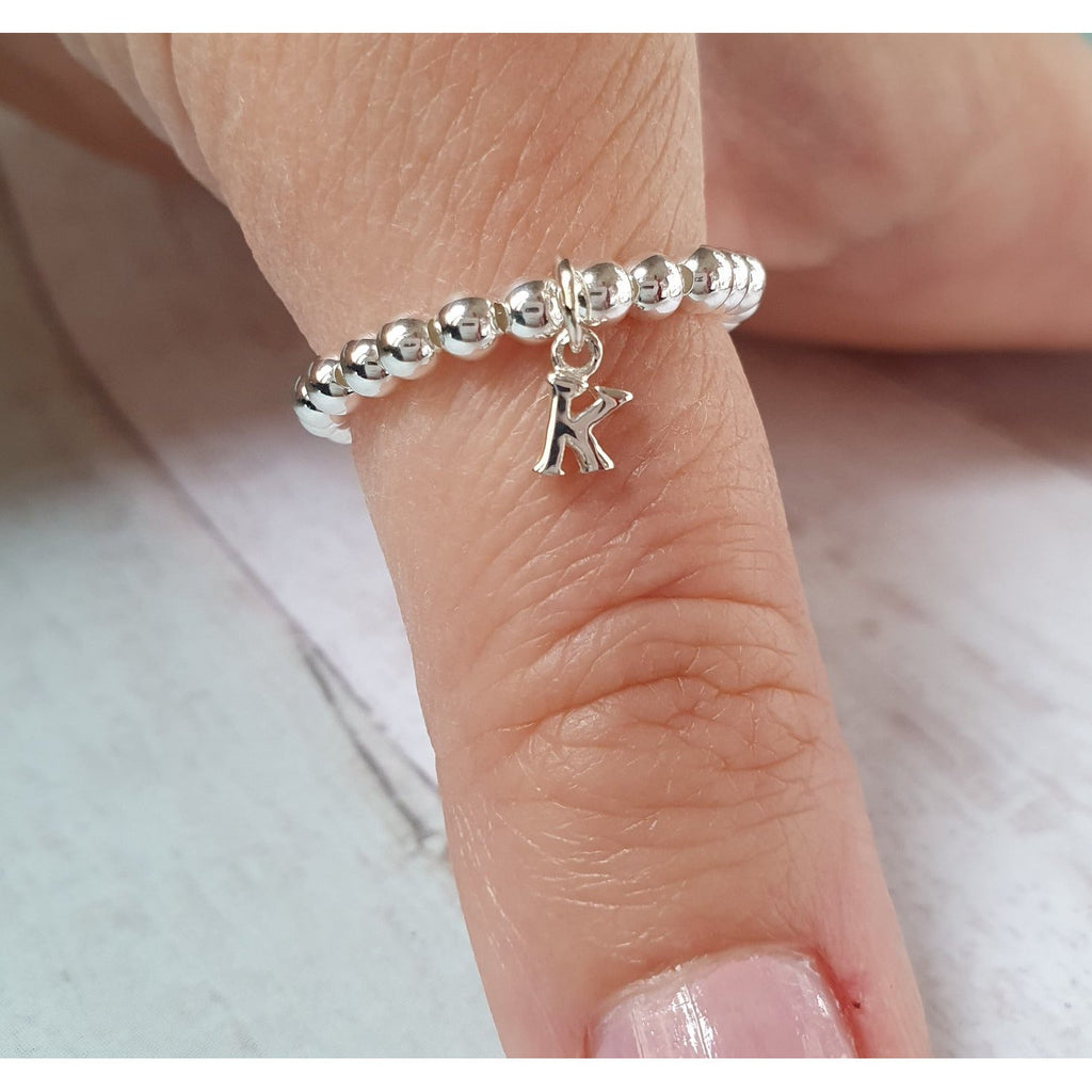 Sterling Silver Hand Stamped Initial Stretch Ring