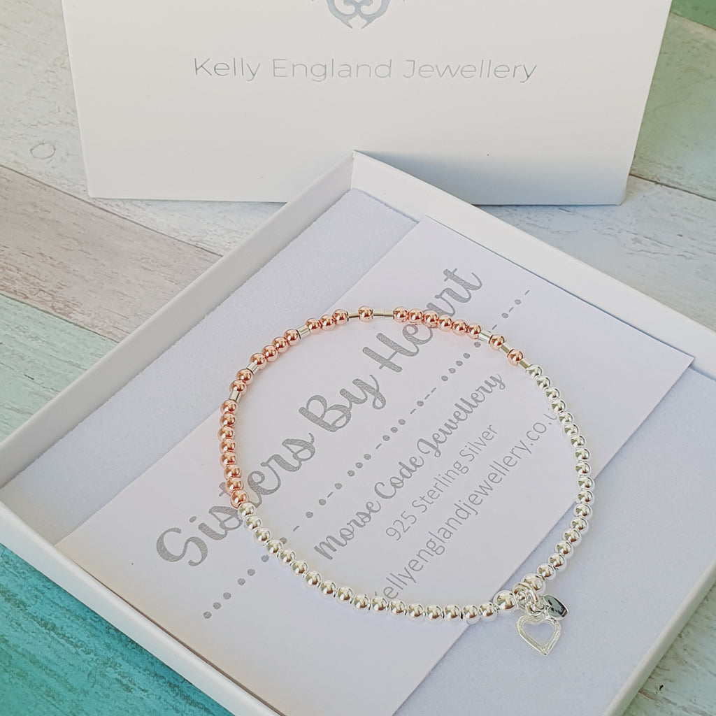 Sisters By Heart Silver & Rose Gold Morse Code Bracelet