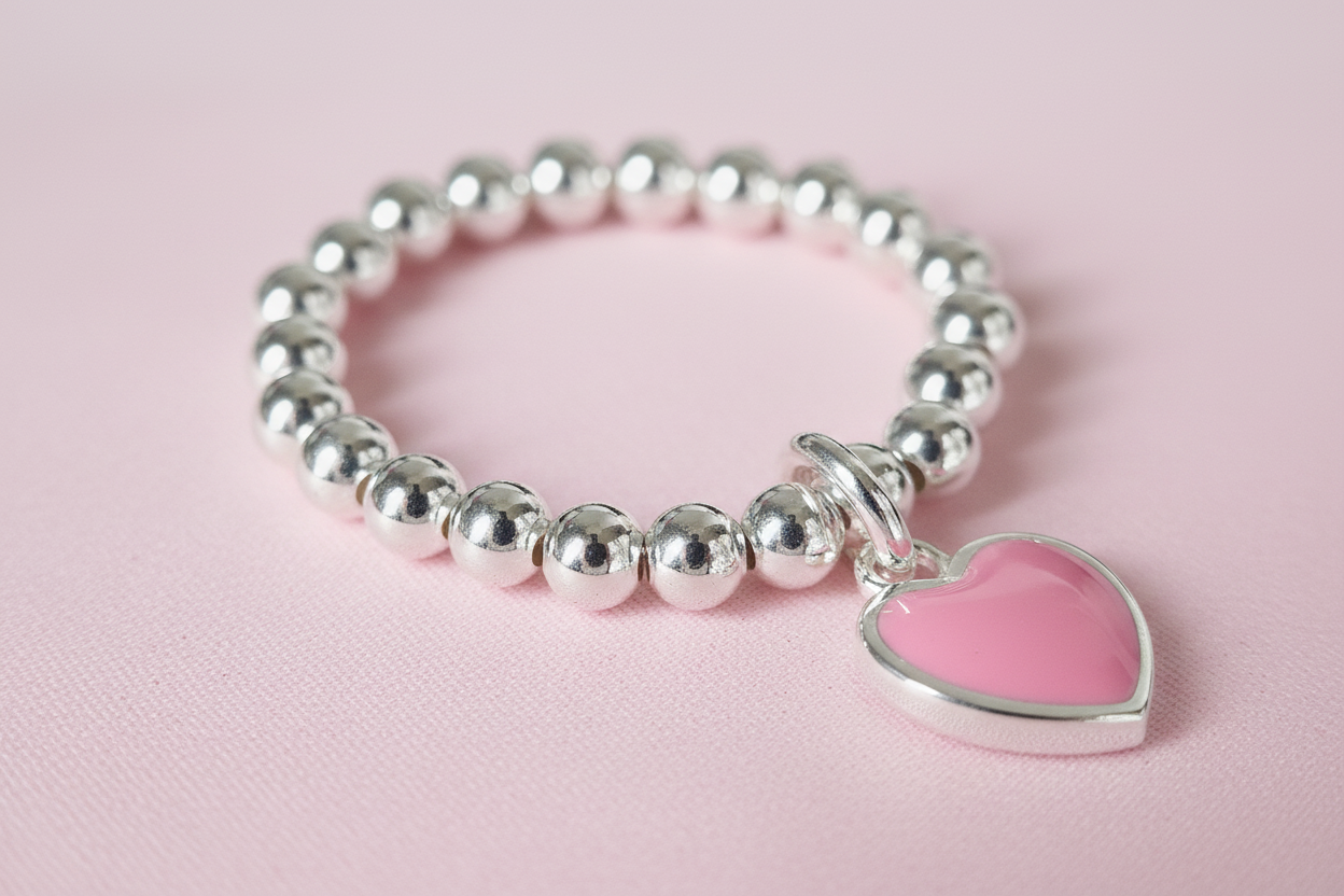 - 9mm Sterling Silver Pink Enamel Heart Charm